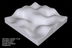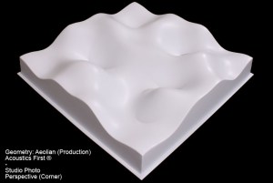 Acoustics First® is pleased to announce our latest creation: The Aeolian™ Sound Diffuser. In some ways a simplified version of our popular Art Diffusor® Model D, the Aeolian™ is the latest in our line of ‘Organic Quadratics’. Part of the Aeolian’s™ unique design comes from its use of “implied symmetry”. Although the edges are all asymmetric, the height variations are just subtle enough to create an illusion of symmetry when installed in a standard 15/16” grid, or spaced appropriately on a wall. The lack of a uniform edge also has added acoustical benefits in the way of “randomness”.
