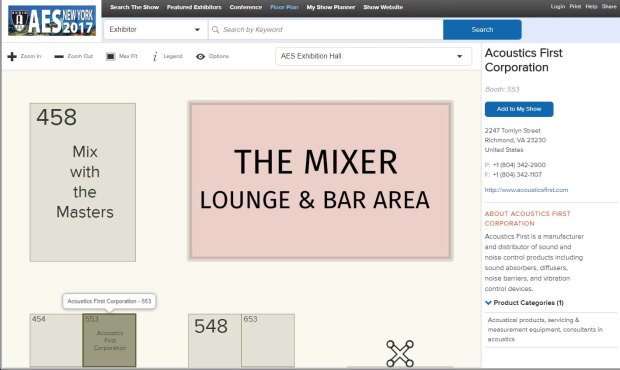 Be sure to stop and see Acoustics First® at the AES/NAB at the Javitz Center in New York, October 18-20, 2017! We are booth number 553 – Next to the “Mix with the Masters” and the “Mixer – Lounge and Bar” area.