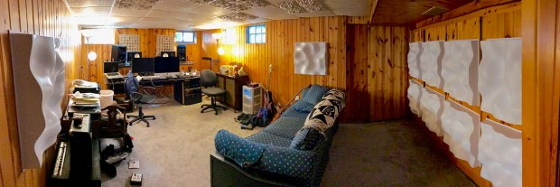 Here’s one of the first install pics of our new Aeolian™ Sound Diffusers, installed in a home project studio. Also note the Art Diffusor® Models F & C, in the ceiling and behind the speakers respectively. This is obviously a diffuser connoisseur’s room.