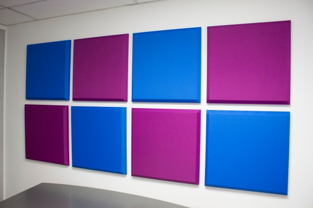 Here’s an array of our Sonora® Acoustical Wall Panels installed on an office wall. You may notice that the colors here really pop! That’s the Guilford of Maine® Whisper line. Whisper is an excellent fabric choice for Sonora panels if you’re looking for something a little more Vivid. You can add some visual life to your space, while taming it acoustically. Over 20 colors available.