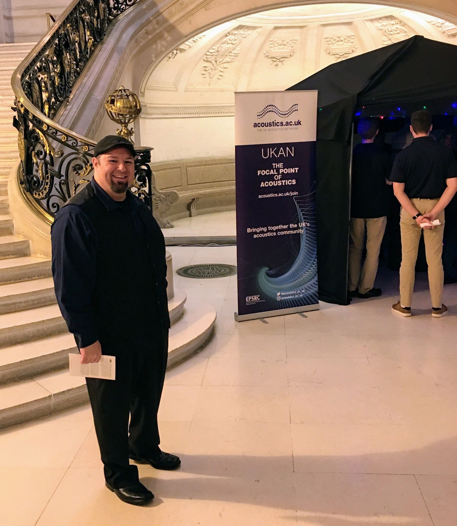Jim DeGrandis from Acoustics First (in his trademark hat!) speaking with Marion Burgess and Michael Taroudakis before the start of the ceremony.