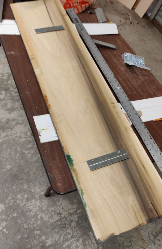 While the stain dried, the mounting plywood was cut down to hide behind the planks. Four hanging straps with eye-loops were then added to the top edge of each of the plywood sections, and spaced to avoid studs.