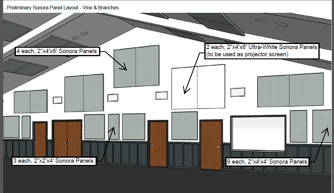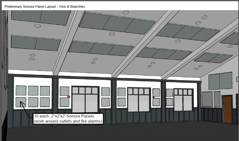 Sometimes you don’t have a large budget for an installation crew, but are in desperate need of acoustic treatment. Also, in complex spaces it helps to have a guide. So, when Acoustics First® was contacted to design a layout for Vine & Branches, our team gave them some extra help.