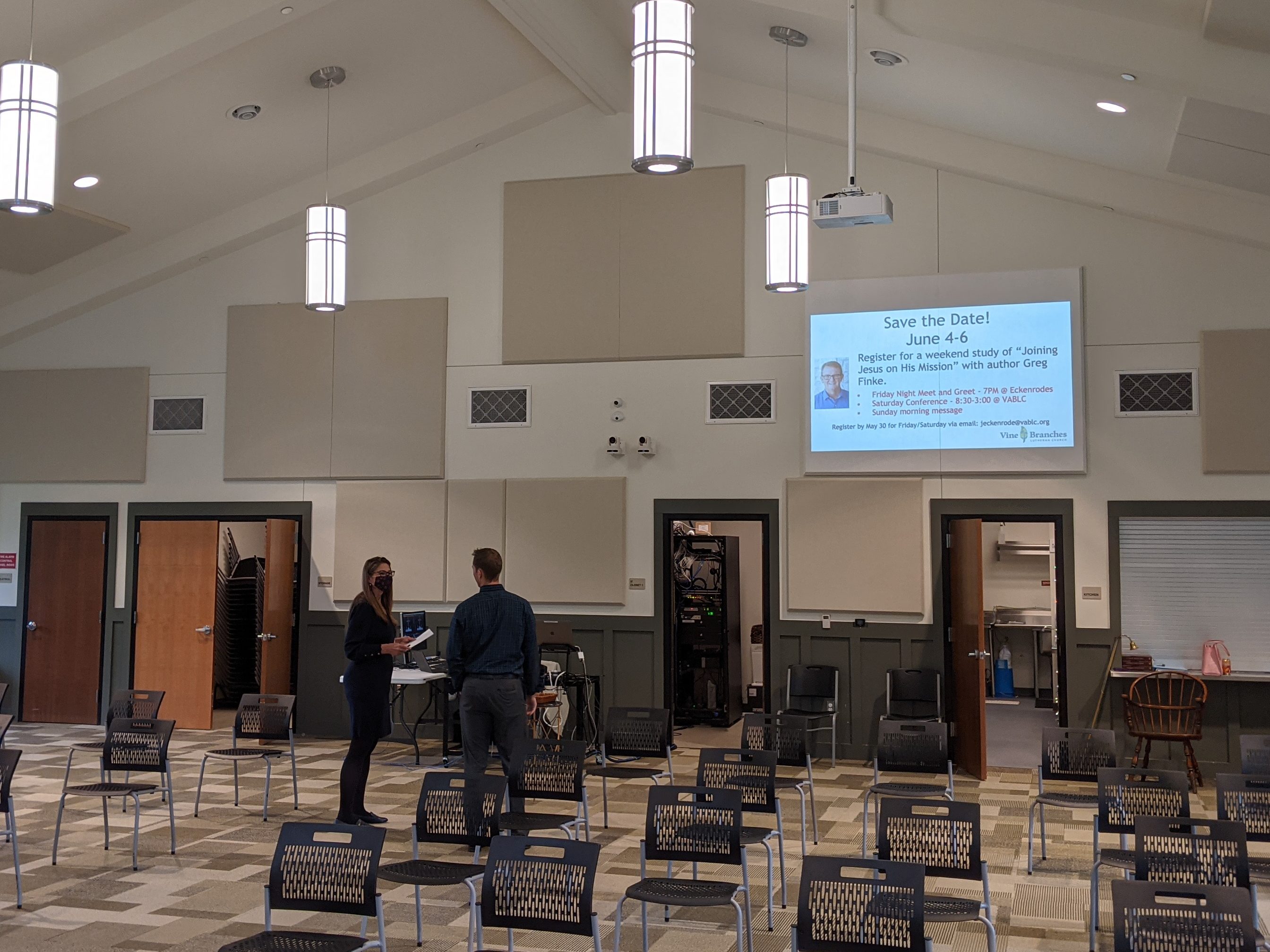 Having a projector area was also required, and there was concern about having a large section of wall that was untreated. The solution was in install two Ultra-White Sonora® panels at the projection location, and use the panels themselves as a screen – a method that has been used in many environments in the past.
