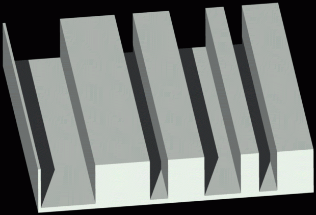 The Model D was an even greater departure. It began with a Maximum Length Sequence (MLS) concept that first changed the varied straight channels into rings of different dimensions. These rings then broke from the MLS mold by getting varied height profiles based on the QRD sequence. As if having different size rings at different heights wasn’t enough… the randomness was further perpetuated through a Boolean process of assigning certain rings a random property that would either add or subtract height from any other ring that they crossed. Finally, the entire surface geometry was smoothed using a bicubic interpolation, creating the organic undulating surface which gracefully spans the entire profile.