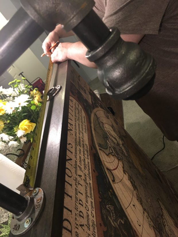 This design is an old map that was printed on a lightweight, polyester fabric banner material. This one is roughly 4′ x 6′ with extra material around the edge to wrap it around the back of the frame. It’s best to have your starting fabric oversize – the graphics sized to the frame, with a boarder wide enough to wrap to the back for fastening. (In this case we will simply staple it to the back of the frame.)