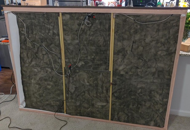 This is a good opportunity to test the lights and wiring, before installing the acoustic material and covering the back.